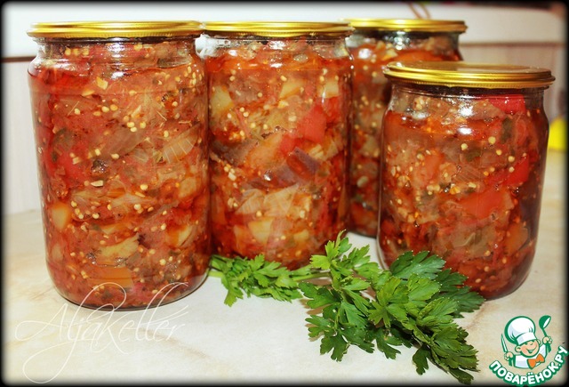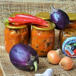 Хочу предложить вам вариант закрутки баклажанов на зиму. Вкусный, ароматный и насыщенно-пикантный салат получается. Но при всем делается без хлопот и совсем несложно. Не будем ничего жарить, крутить и пюрировать. Минимум растительного масла и уксуса. Получается яркий, остренький и совсем не жирный салат. Приглашаю на дегустацию!