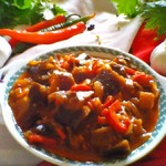 Это сухая аджика, нам присылают из Грузии. Если нет у вас такой в наличии, можно заменить на острый молотый красный перец. Я кладу 2 ст л, пробуйте на свой вкус. Может понадобиться меньше.
