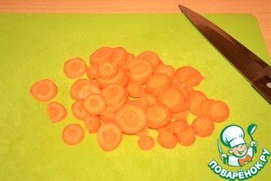 Итак, приступим. Для начала, чтобы процесс шел быстрее, вскипятите воду в чайнике и перелейте в кастрюлю, на огонь. В это время, моем и чистим морковь, режем на круглые слайсы. Опускаем в кипящую воду. Минут 10 она там будет варится, в это время займемся кнелями.