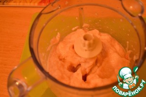 Охлажденную грудку порубите на более мелкие куски, чтобы вместилась в блендер, добавьте багет, яйцо и желток, а так же молоко. Посолите, поперчите. Специи можете брать на свое усмотрение. Проработайте блендером.