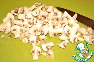 Моем, чистим, режем грибы. Лучше всего на четвертинки.