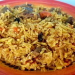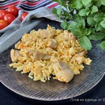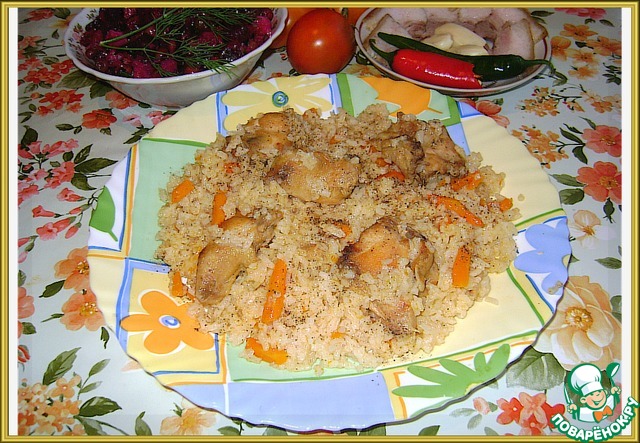 Сдандартный плов - из баранины или свинины, а я иногда делаю из курицы, тоже получается вкусно.