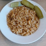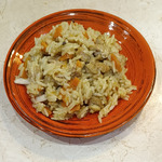Когда мясо обжарится, засыпаем рис (я брала длинный, пропаренный), даем ему немножко пропитаться маслом (буквально минуты 3). НЕ МЕШАТЬ!