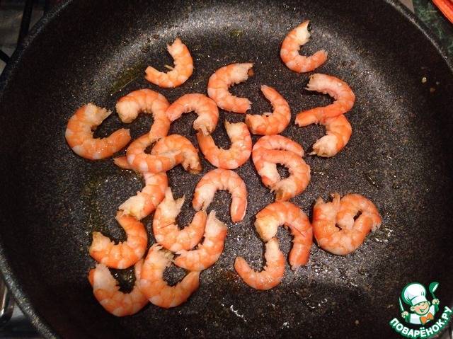 - Креветки (Вес не очищенных креветок.) — 400 г