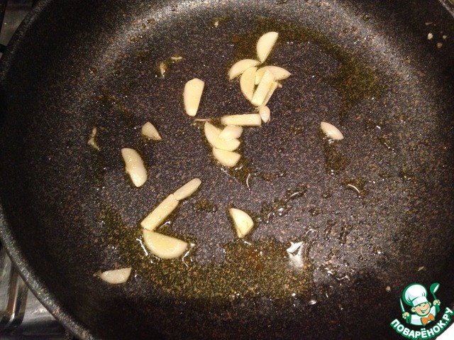 В итоге мы должны получить ароматное чесночное масло. Чеснок выбрасываем, больше он нам не понадобится. -