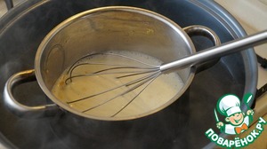 Ставим кастрюлю на водяную баню, доводим до закипания, постоянно помешивая.