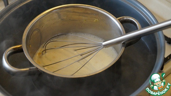 На водяную баню ставим для того, чтобы яйцо не свернулось в молоке в омлет, и стало нежной кремовой консистенции.