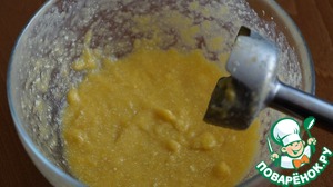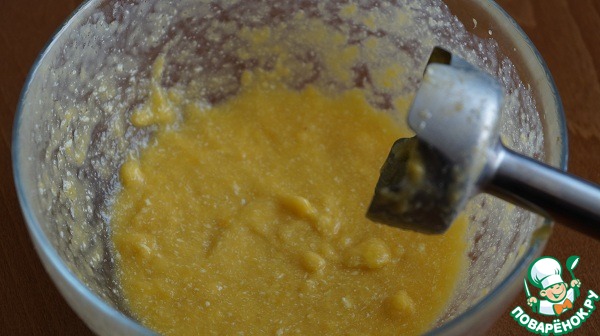 • Тем временем измельчаем с помощью блендера одно некрупное манго, 50 мл молока, 20 гр сливочного масла 2 ст. л. сахара.