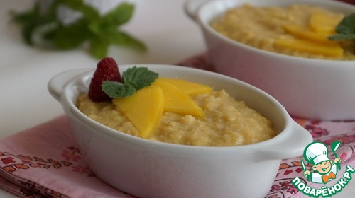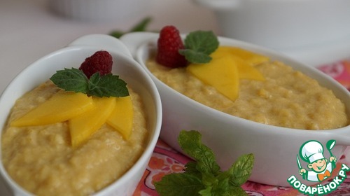 При добавлении в горячую кашу холодной смеси из манго, каша становится как раз той температуры, которую удобно кушать как деткам, так и взрослым. И не придется дуть на нее и ждать. -