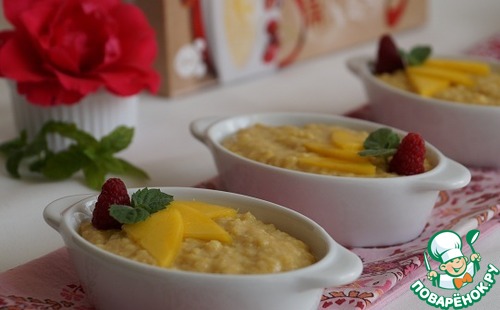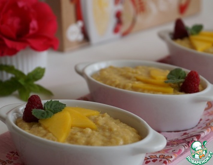 Но мы сегодня идем другим путем: добавляем смесь манго в кашу, перемешиваем.