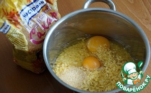 К хлопьям добавляем 2 некрупных яйца, примерно 2 ст. л. сахара