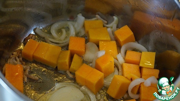Вливаем примерно 200 мл. горячей воды и тушим до готовности тыквы - примерно 10-15 минут.