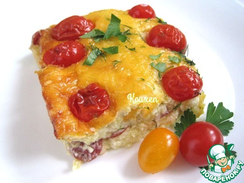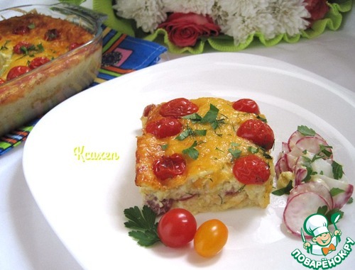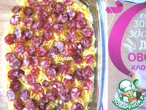 Рецепт «Кабачковая запеканка с охотничьими колбасками»: