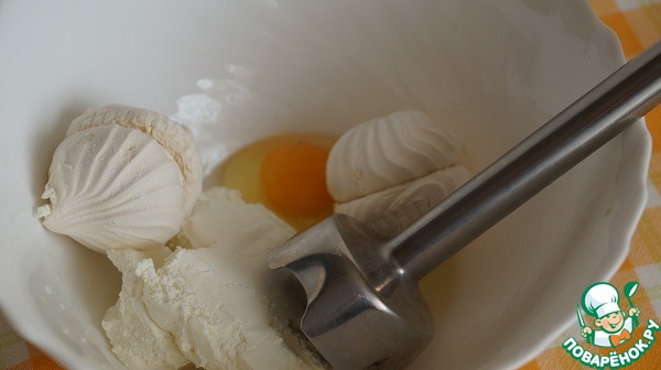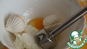 100 гр зефира (2 штучки), 1 яйцо, пачку творога и молоко пробьем блендером до однородности