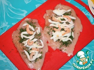 Рецепт «Куриная грудка, фаршированная морепродуктами и сыром»: