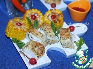 Предлагаю вам для романтического ужина куриную грудку с начинкой из морепродуктов и сыра. А на гарнир кукурузу - "царицу полей".