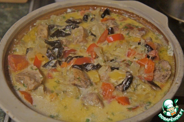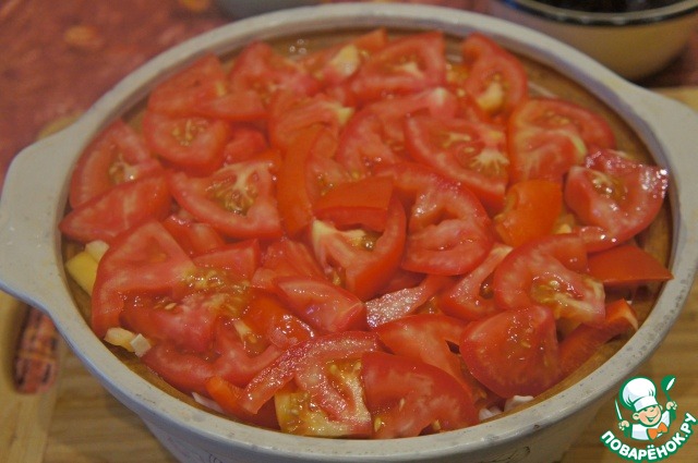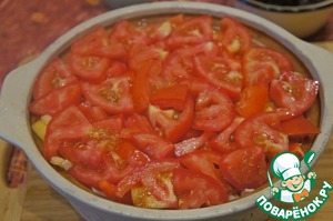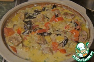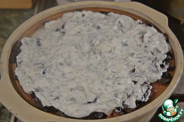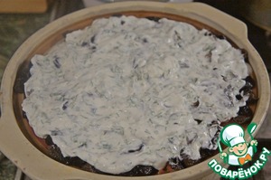 Залить этим соусом блюдо. Затем с краю аккуратно влить немного воды, примерно половину стакана.