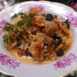 Рецепт не нов, встречается часто, сайт по запросу выдал 25 рецептов, один из которых оказался салатом. Однако, такого состава не оказалось. Тут рецептура расширена за счет добавления довольно большого количества разных овощей и получилось шикарное овощное рагу с мясом.