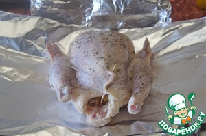 Вернуть курицу в духовку, уже не заворачивая, на 30 минут.
