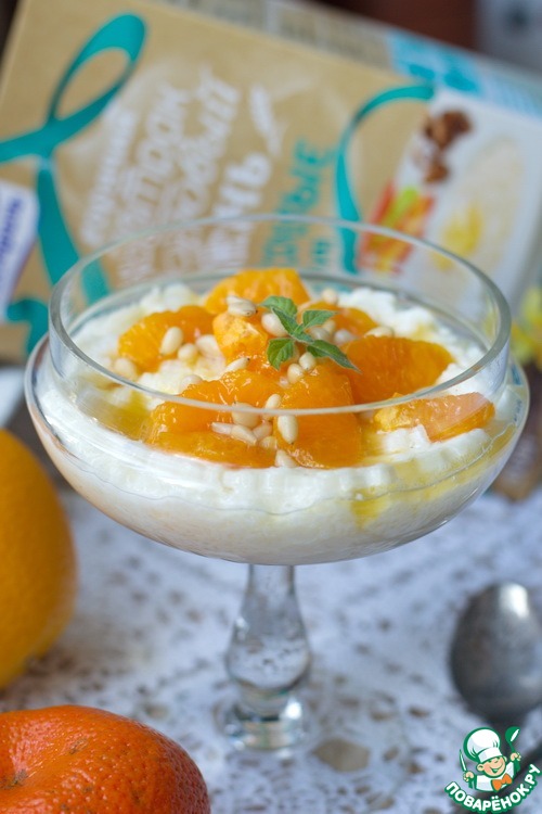 Выкладываем сверху мандарин, поливаем соусом.