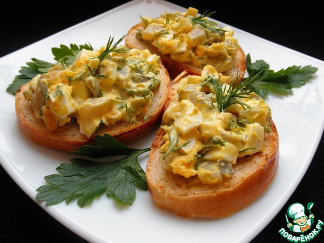 Яичный салат на гренке