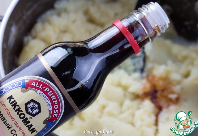 2. К картофелю добавить яйцо, соевый соус. Тщательно перемешать (если необходимо, то досолить по вкусу, я не досаливала).