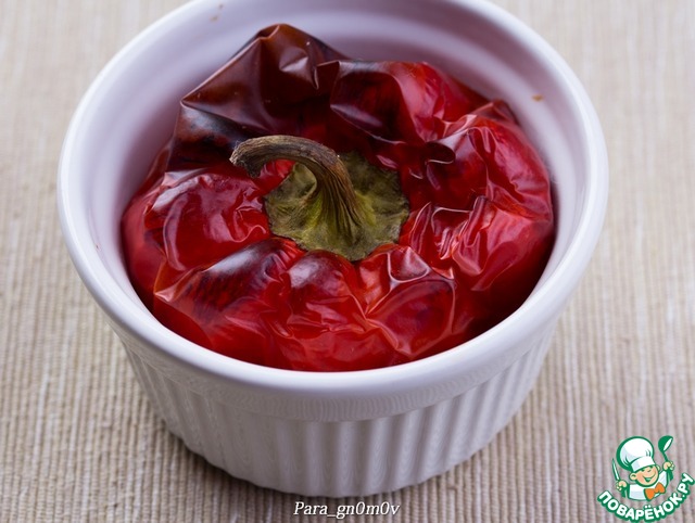4. Одновременно с замесом теста нагреть духовку до 180-190 градусов и запечь болгарский перец в течение 25-30 минут (время зависит от размера) до появления подпалин. Перец остудить, почистить и нарезать кубиками или полосками