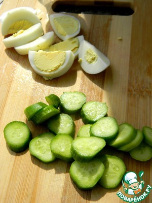 Огурец и яйцо нарезать.