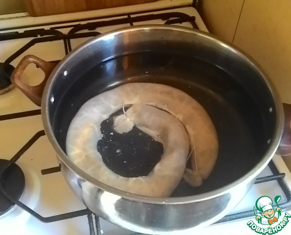 Избранный казы кладу в холодную воду в кастрюлю и ставлю на средний огонь. Казы не терпит спешки, може лопнуть кишка. Когда вода закипает, протыкаю колбасу в нескольких местах, как правило, с краев и по середине зубочисткой, при этом со специфическим звуком пруууу, из казы выходить сок и немного пузырьков. можно и чуть больше проткнуть. Затем уменьшаю огонь, чтобы еле булькало и оставляю вариться при открытой крышке до 3х часов. Во многих рецептах говориться про 1,5 или 2 часа, но конина мясо жесткое и чем дольше варишь, тем нежнее. По мере выкипания добавляю горячую воду из чайника. Да, кстати, воду вообще не солю, ибо соли в казы очень много, и излишки выходят в воду по мере варки.