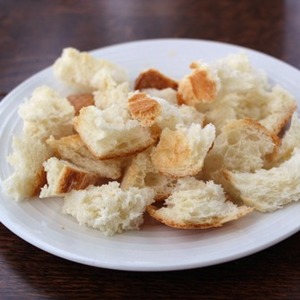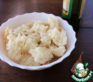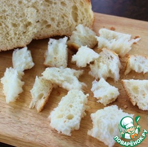 Пока маринуется лук, наломать чиабатту на кусочки, размером на один укус.