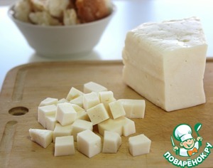 Нарезать сыр фета или брынзу