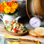 Салат с чиабаттой и сезонными овощами