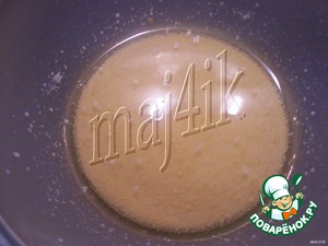 Тёплое молоко и воду смешать и добавить дрожжи.