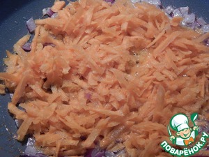 Добавить нашинкованную морковь, обжарить минуты 3.