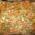 Залить яично-сливочной смесью и поставить в духовку на 20-25 минут при 190 градусах.