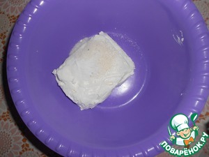 Добавить к творогу одно яйцо, ванилин, сахар.