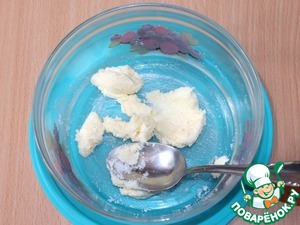 В посуде растереть мягкое сливочное масло (25 г) вместе с сахаром.