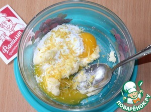 Добавить яичные желтки, ванилин, крахмал и цедру лимона.