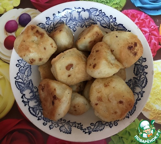 Вынимая по одному вилкой, опускаем в кипящее масло.