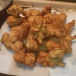 Даем слегка обсохнуть от масла на бумажном полотенце. Кстати, кляр у меня еще остался, и я пожарила из него очень вкусные несладкие оладушки.