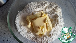 Отмерить муку в большую чашку. Маргарин размять с мукой.