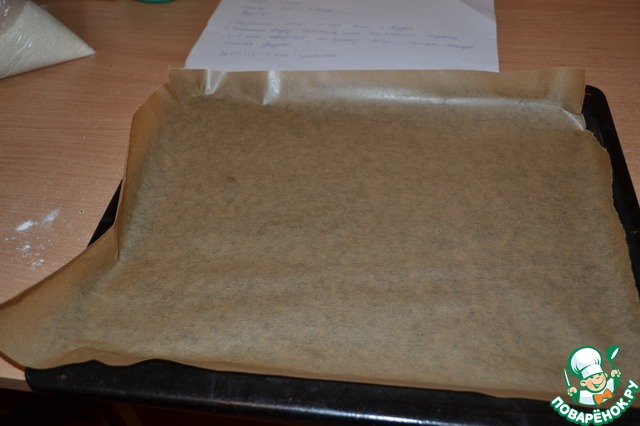 Застилаем противень пергаментом, маслом смазывать не нужно.