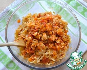 Тем временем отварить пасту согласно указаниям на упаковке. Готовые макароны слить.