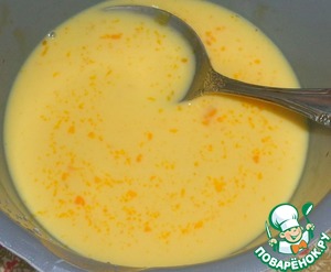 Молоко смешиваем с яичным желтком и сахаром. Ставим на медленный огонь и нагреваем. -