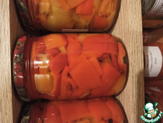 Сейчас у меня получилось 7 баночек (3,75кг перца, маринад делала пропорционально, т. к. он все равно остается)