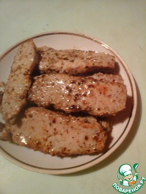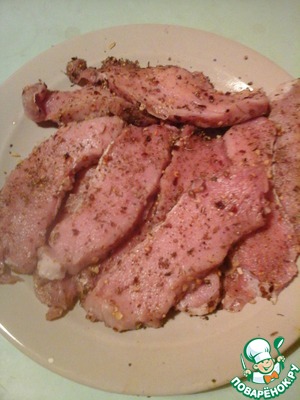 Обжарить свинину до полуготовности с обеих сторон и переложить на тарелку.