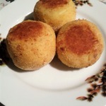 Вкусное и сытное блюдо. Нежная свининка в панировке и картофельном пюре - то, что нужно для семейного обеда! Гарнир и мясо, так сказать, "в одном флаконе"))) У меня получились совсем не колобки на вид, т. к. были длинные кусочки мяса, а если взять поменьше, будут именно колобочки - золотистые и аппетитные))) Но вкус отличный в обоих случаях!