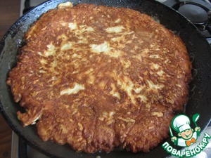 Когда Хачапури поджарится с одной стороны (примерно 5 минут), аккуратно широкой лопаткой перевернуть его на другую сторону.