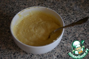 Смешиваем желтки, молоко, сливки, масло, пудру, просеянную муку, ванилин