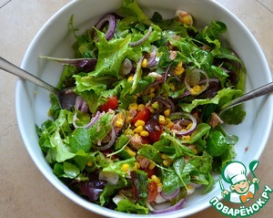Такой салат-микс можно с легкостью менять под свой вкус! Но нам он больше всего нравится именно в таком сочетании... Салат получается очень вкусный, свежий и сочный! Понравится как взрослым, так и детям! Попробуйте, может быть и для вас он станет любимым? ))